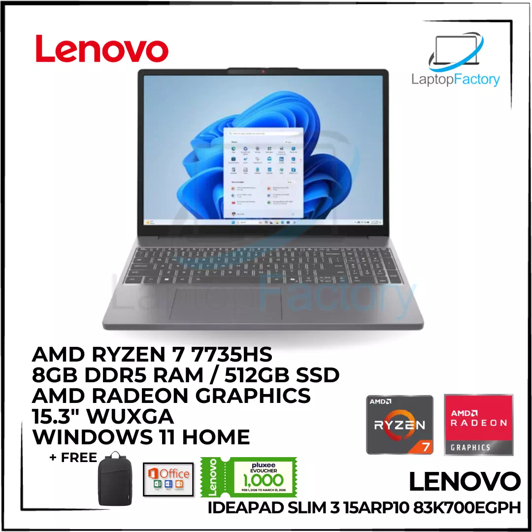 | Inclusions: | 🎁Lenovo Bag 🎁MS Office Home & Student 2024 + MS 365 Basic 🎁 LENOVO PROMO: Pluxee evoucher worth 1,000 (This promotion is valid from February 1, 2026 to March 31, 2026 only.) Important Reminder: Claim the promotional offer after seven (7) days of purchase.) |